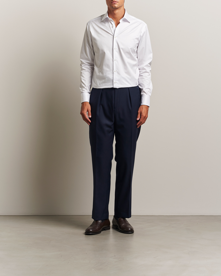 Shirts may seem simple at first glance – a fabric, a collar in various shapes, buttons at the front, and a classic cuff. But behind a high-quality shirt lies significantly more. It is built on thoughtful choices: a fabric woven from fine and high-quality yarn, a collar with a stable construction, and seams that are carefully placed and sewn with precision. Every detail matters: from how the buttons are attached to the fit construction and how patterns align around seams and details. All of this plays a crucial role in how the shirt ages, feels, and holds up over time.