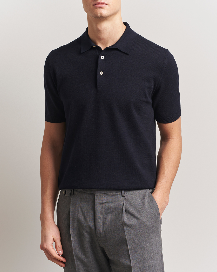 Short Sleeve Knitted Polo Navy