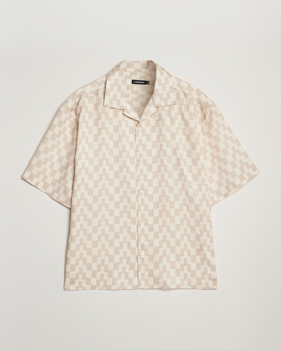 BOSS Lars Printed Resort Collar Short Sleeve Shirt Open Beige