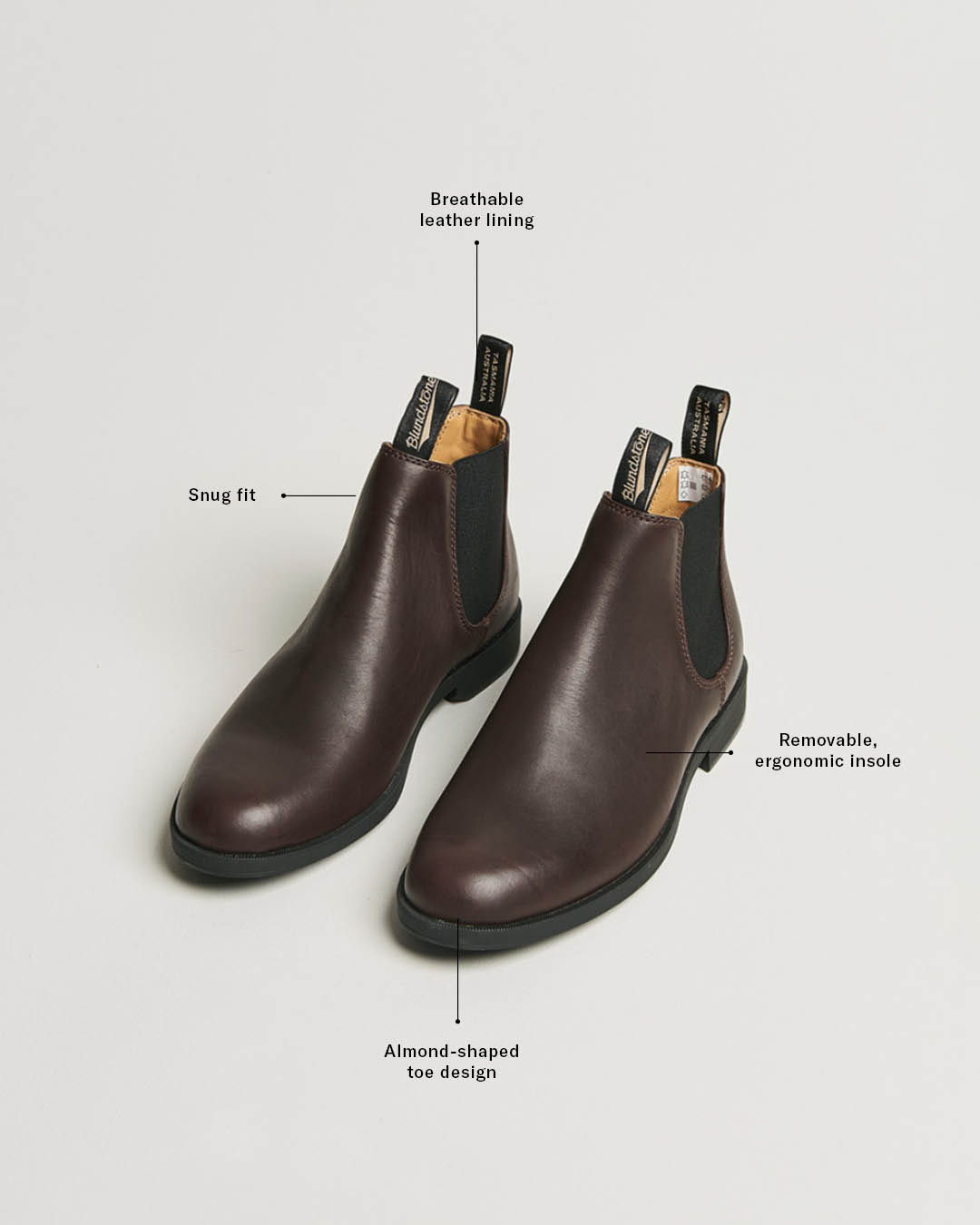 Die Dress-Serie ist Blundstones Antwort auf das Bedürfnis nach eleganten Chelsea Boots, die sowohl im Büro als auch bei formelleren Anlässen praktisch sind. Diese Serie vereint Blundstones langlebige Handwerkskunst mit einem raffinierten und stilvollen Design, wodurch die Stiefel zu einem modischen Bestandteil deiner Garderobe werden. In der Serie finden sich unter anderem die Modelle 062, 063, 1900 und 1901. Mit ihrer schmaleren Passform und polierten Ästhetik unterscheidet sich die Dress-Serie von den anderen Blundstone-Serien durch ihre elegante Form und durchdachten Details.