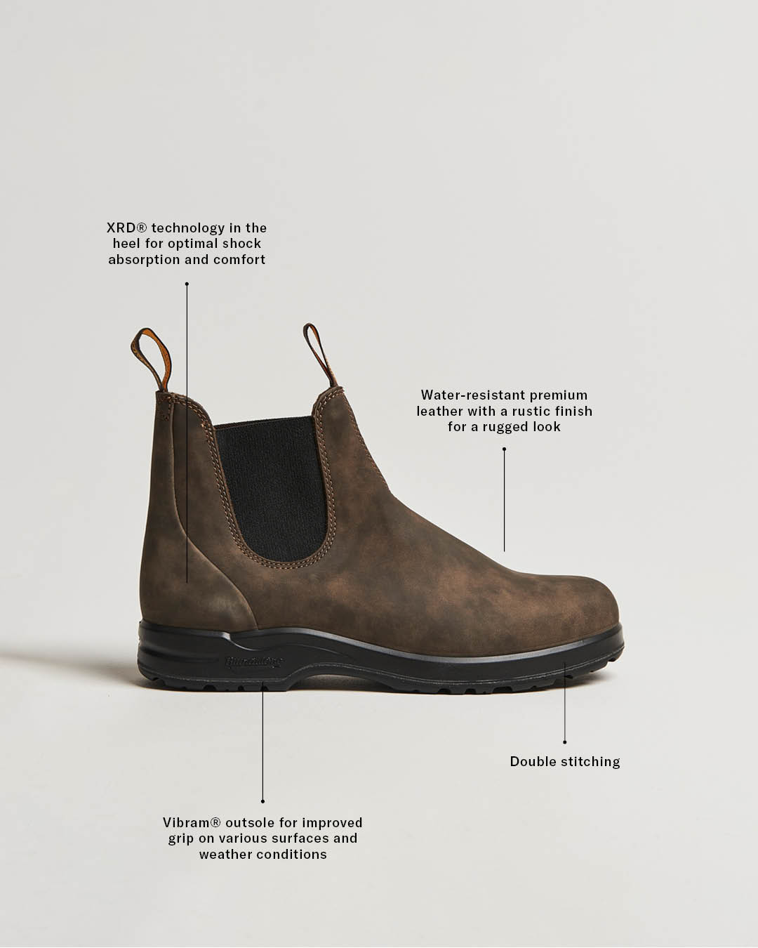 Die All-Terrain Serie von Blundstone ist eine natürliche Erweiterung des Erbes von Blundstone als Hersteller von Arbeits- und strapazierfähigen Schuhen. Diese Serie wurde mit der Vision entwickelt, Stiefel zu kreieren, die den Herausforderungen der Natur standhalten, ohne dabei Kompromisse bei Komfort oder Stil einzugehen. Durch die Kombination von Blundstones traditionellem, langlebigem Handwerk und der innovativen Vibram®-Technologie entstand eine Serie, die in Bezug auf Grip und Stabilität auf verschiedensten Untergründen überzeugt.