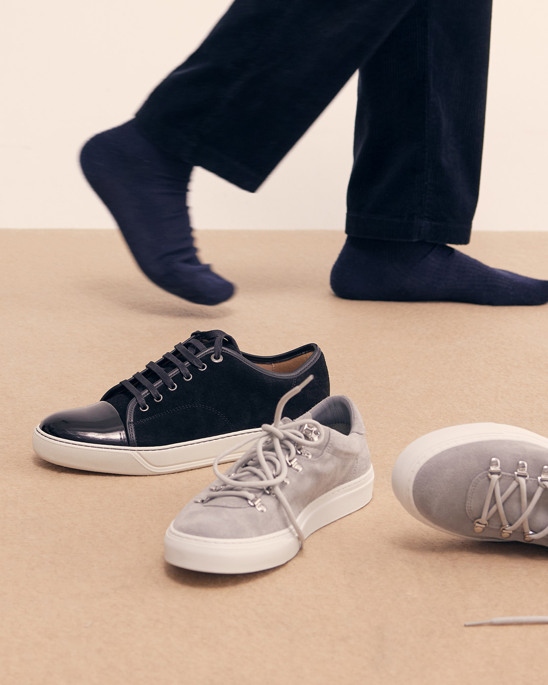 Socken in Turnschuhen mögen auf den ersten Blick eine naheliegende Wahl sein. Im Sommer sehen wir jedoch viele Menschen, die Knöchelsocken in ihren Turnschuhen tragen – eine Option, bei der man in Bezug auf Stil etwas vorsichtig sein sollte, da der Sockenrand nicht über den Schuh hinausragen sollte. Eine "No Show"-Socke ist hier die bessere Wahl, wenn Sie den Eindruck nackter Knöchel erzielen möchten.