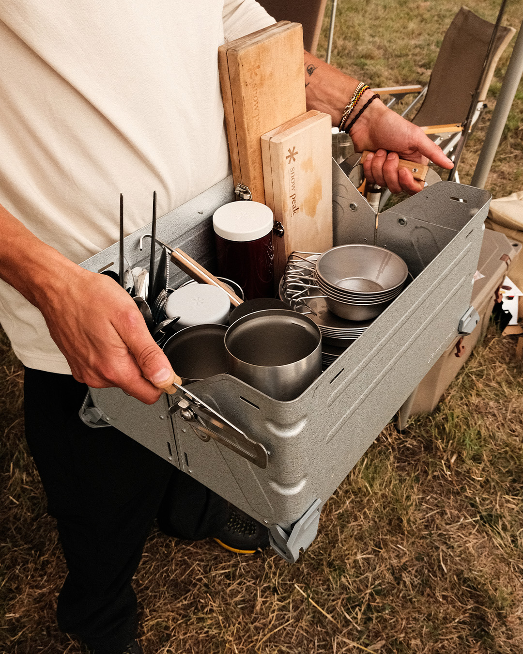 Stackable, sturdy, and with a refined industrial look. A piece of kit that quickly becomes indispensable – whether in the car, at basecamp, or stored in the garage between trips.