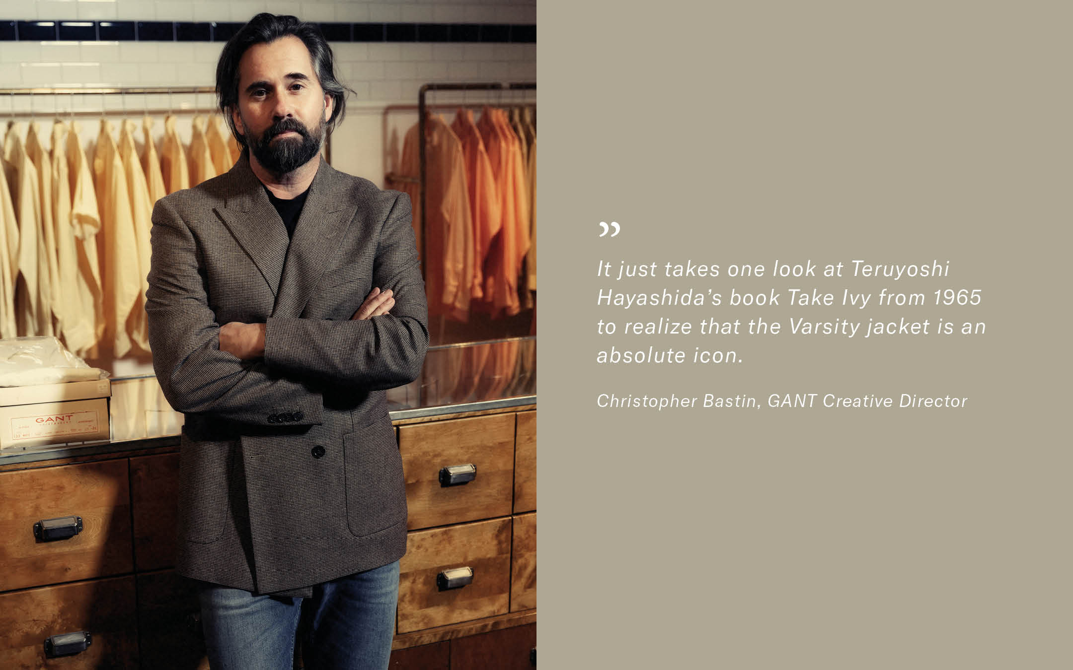 - It just takes one look at Teruyoshi Hayashida's book Take Ivy from 1965 to realize that the Varsity jacket is an absolute icon. GANT was right there on campus when the style was born and supplied prep staples like the Oxford Button-Down to both jocks and academics alike. Throw in the club blazer and you're good to go, says Christopher Bastin, GANT Creative Director.