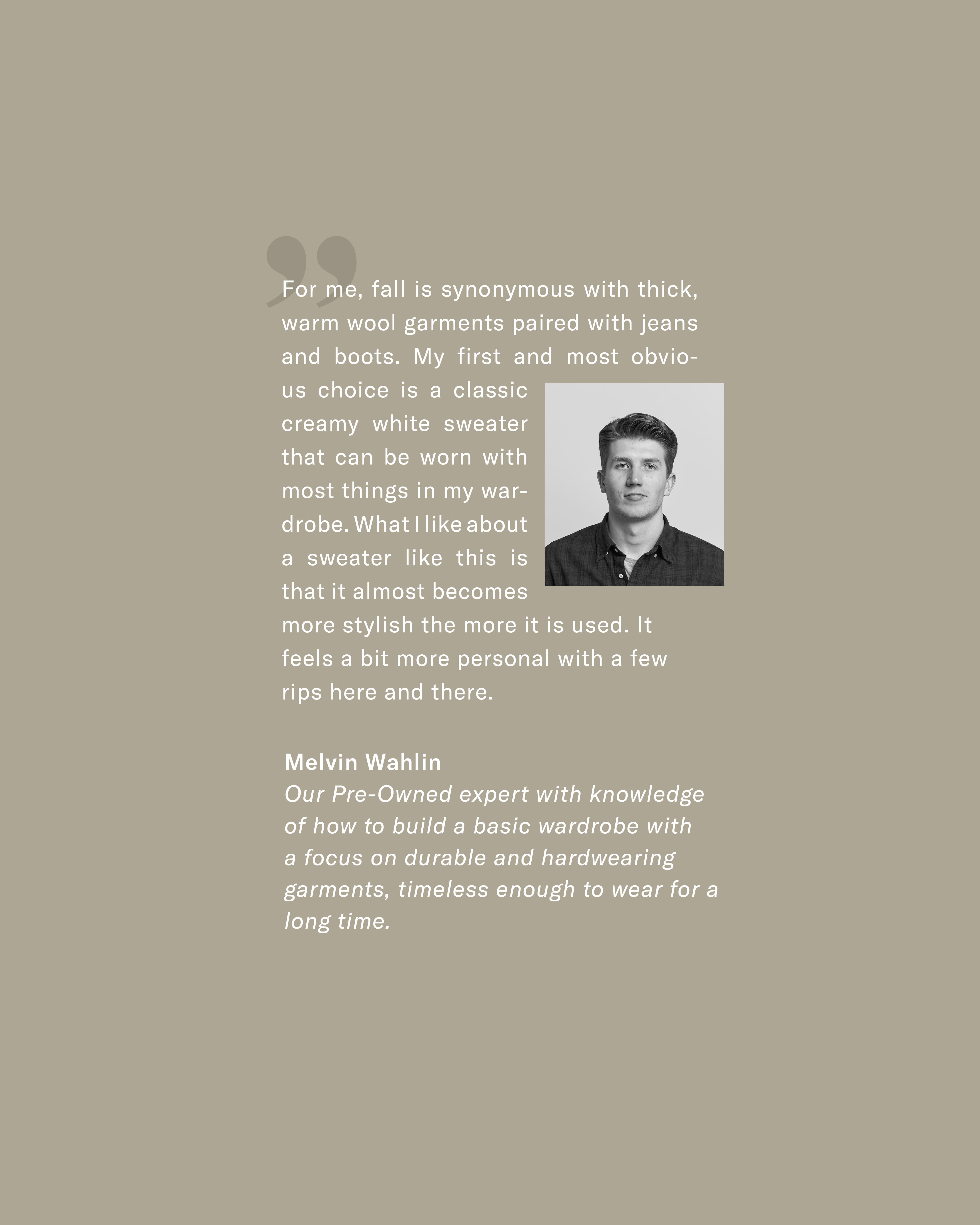 "A classic creamy-white sweater"