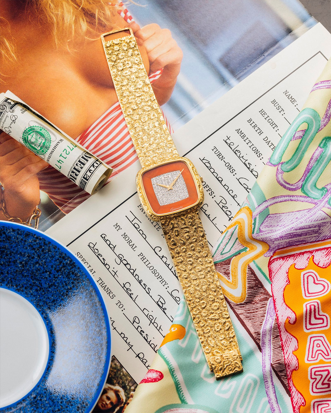 „Für mich dreht sich alles um Präsentation und Storytelling“, erklärt er. „Deshalb arrangiere ich die Bilder so, dass die Accessoires sowohl zur Uhr als auch zur Epoche passen, aus der sie stammt. Das erweckt die Stücke zum Leben.“