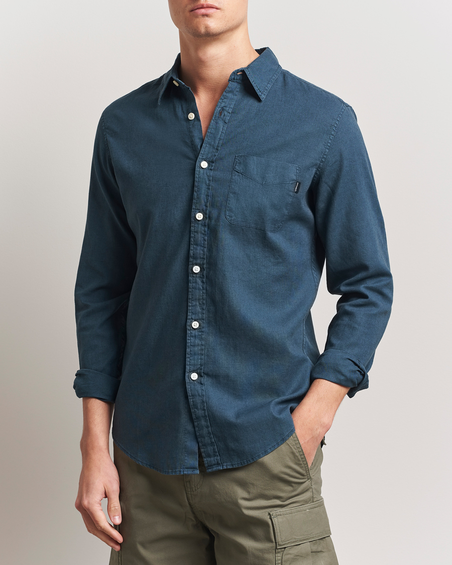 Slim Cotton/Linen Shorts Teal Leaf