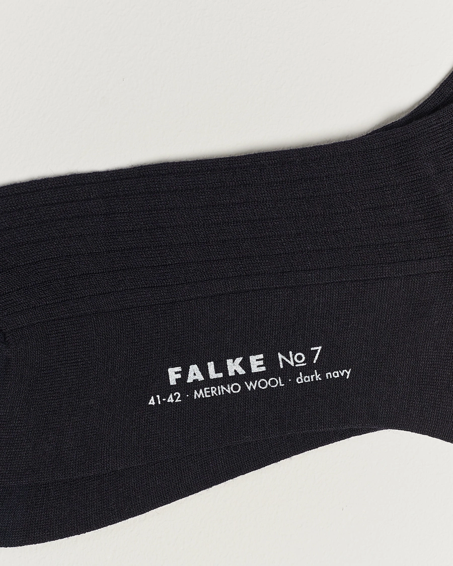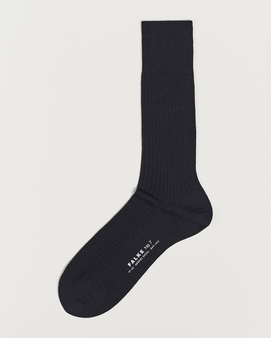 No. 7 Finest Merino Ribbed Socks Dark Navy