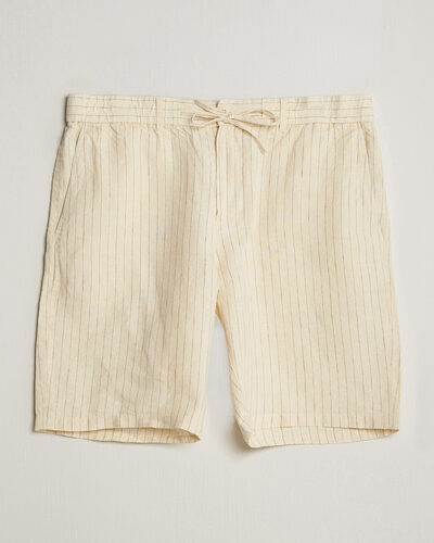 Regular Fit Striped Linen Drawstring Shorts Evening Blue