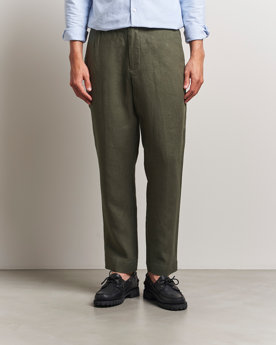 NN07Billie Linen Drawstring Trousers Croc Green
