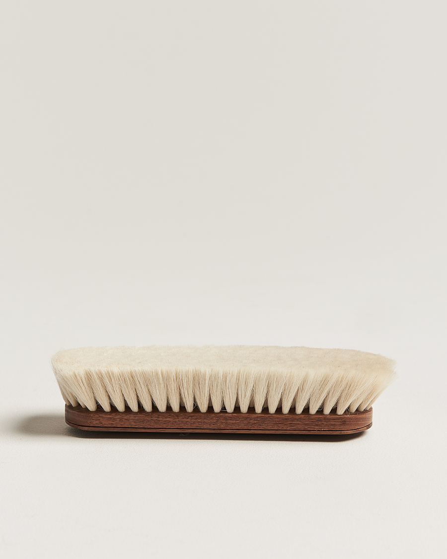• Integrierter Magnet auf der Rückseite zur einfachen Aufbewahrung in "The Social Briefcase" von Paul Brunngård.AnwendungIdealerweise verwenden Sie den Tiegelpinsel nach dem Auftragen und Trocknen von Schuhcreme/Schuhwachs oder um eine vorhandene Politur nach Gebrauch wiederherzustellen. Bürsten Sie das Obermaterial in einer linearen Bewegung vor und zurück, bis das Leder wieder einen hohen Glanz erhält. Wiederholen Sie den Vorgang, bis das überschüssige Wachs/die überschüssige Creme entfernt ist. Verwenden Sie kein Wasser auf der Bürste.Artikelnummer26015610