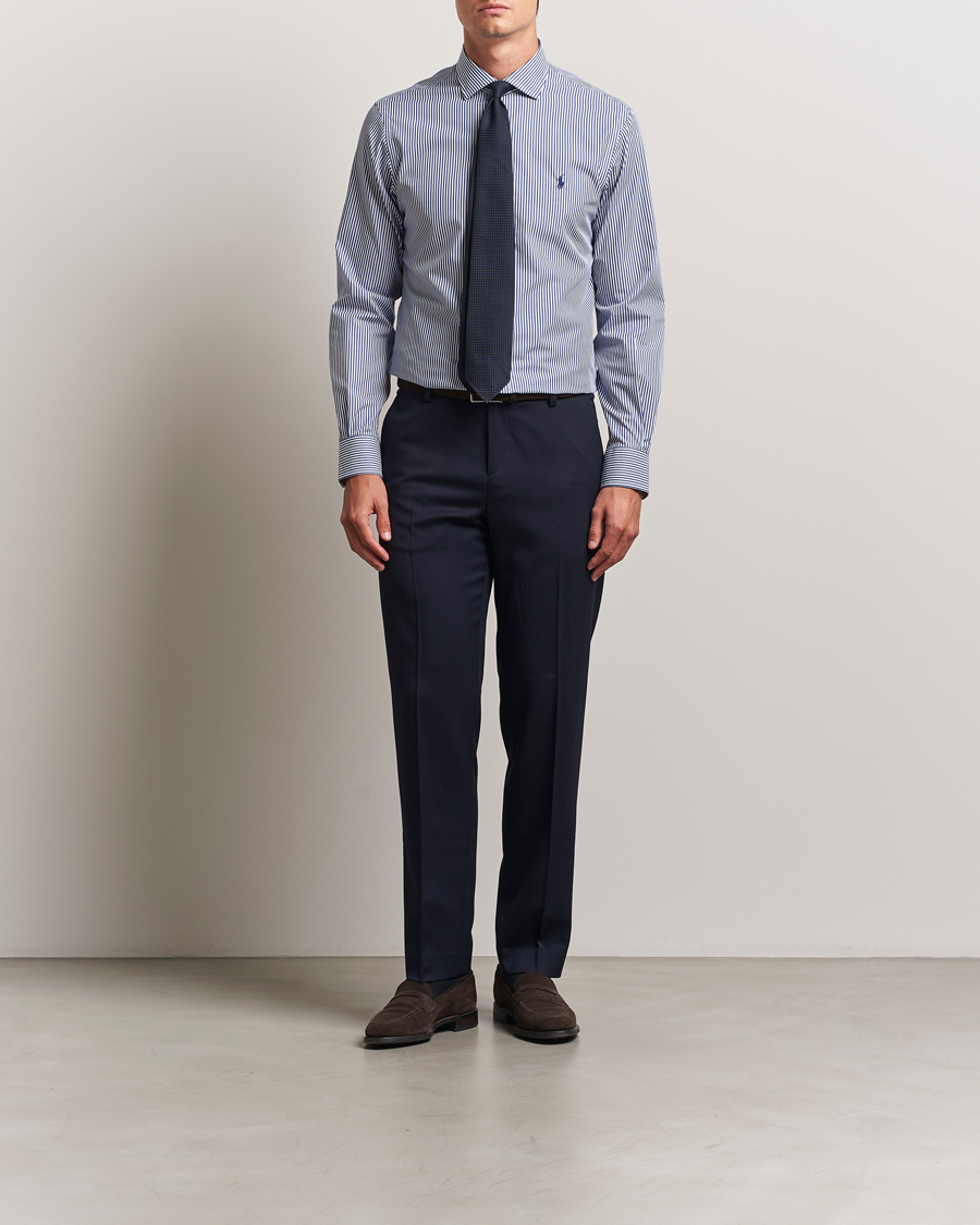 1899 Slimline Button Down Stripe Shirt White/Blue