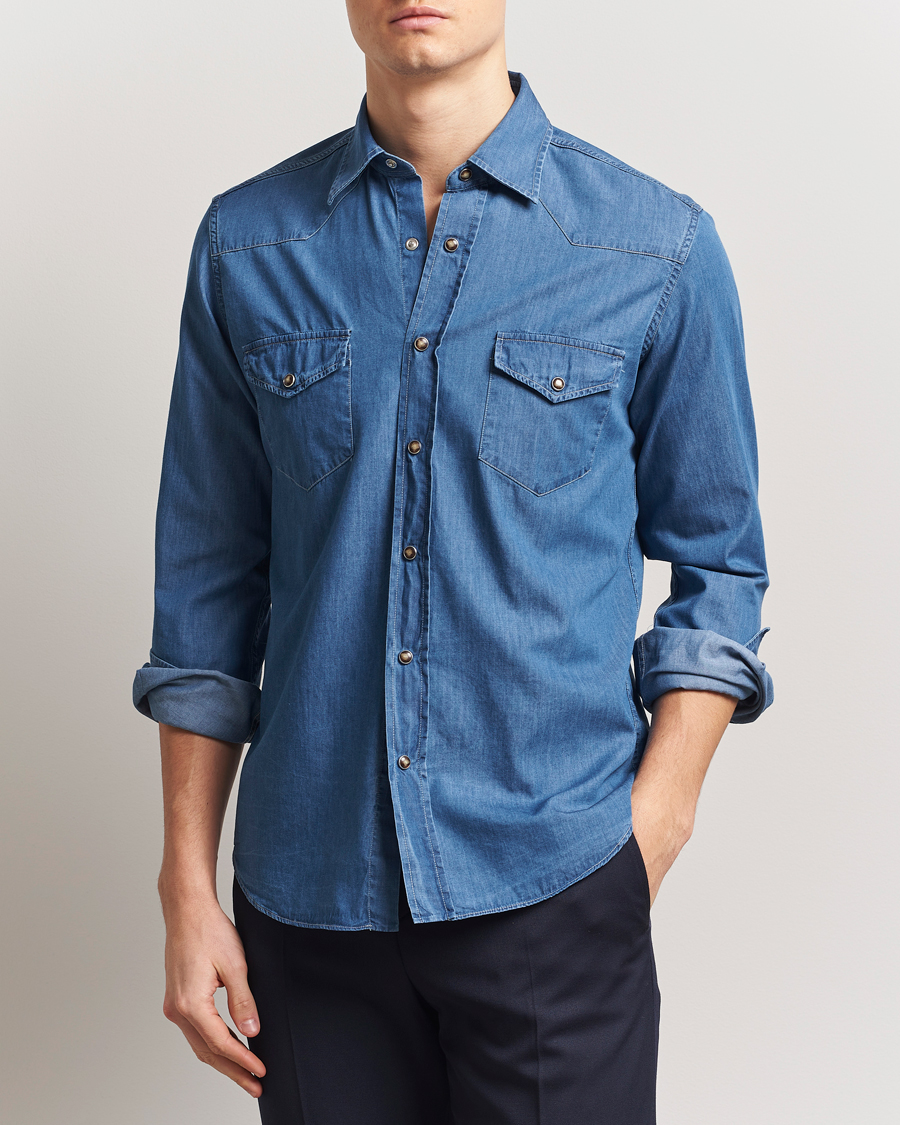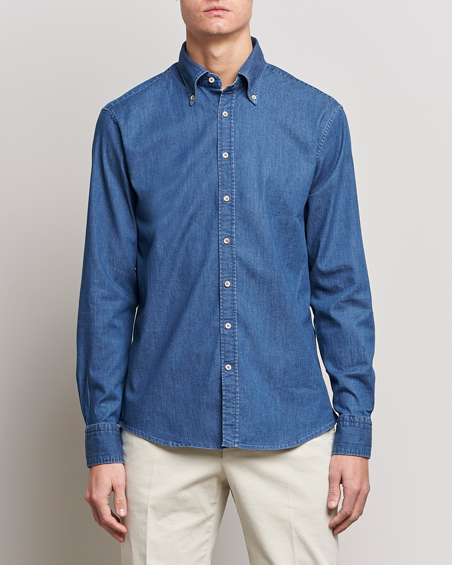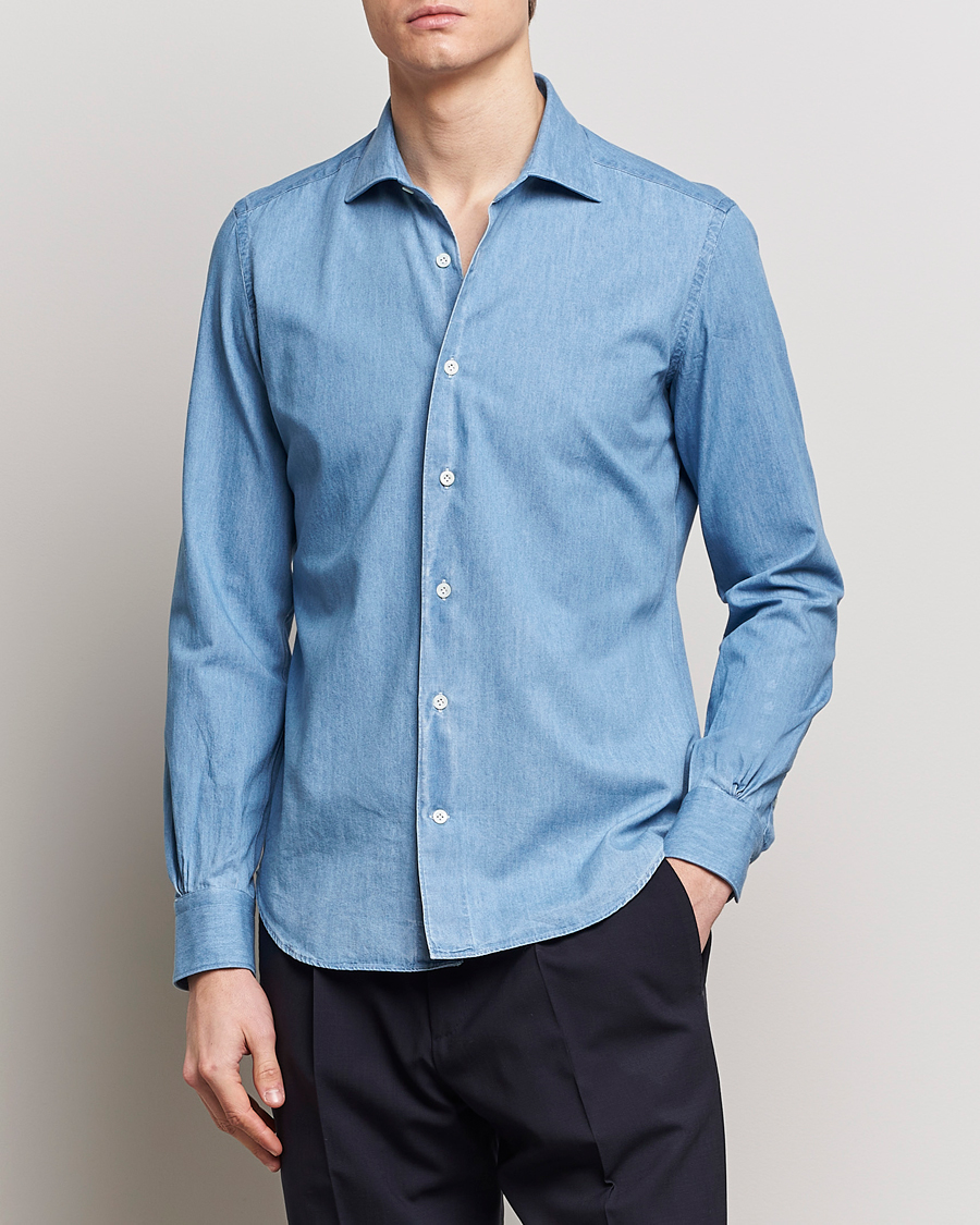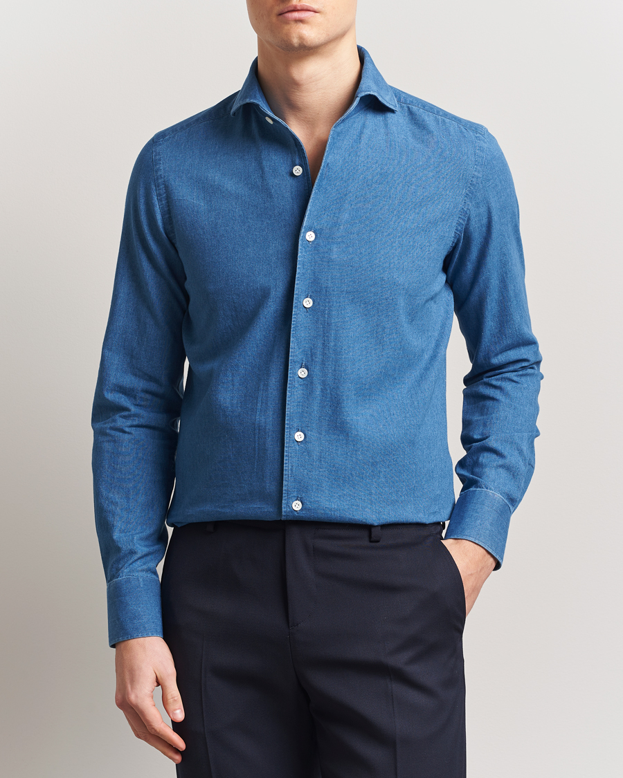 Fitted Body Garment Washed Shirt Dark Denim